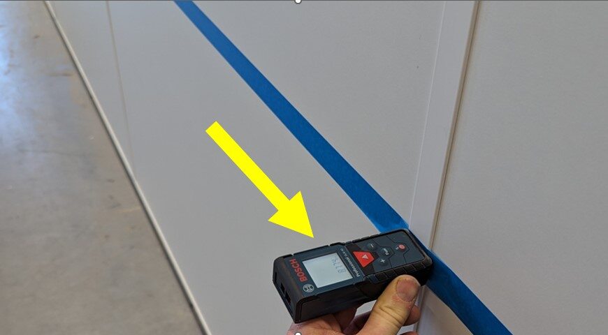 - 将一束垂直于墙壁的激光投射到车辆中心点,然后在墙壁上标记一条中心线。