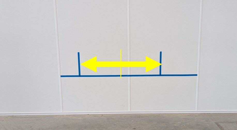 在左右两侧距离中心线 66 厘米(26 英寸)处的墙壁上粘贴胶带。