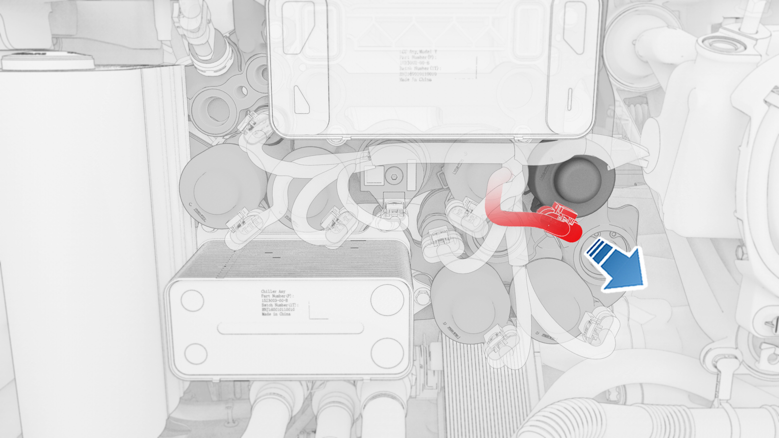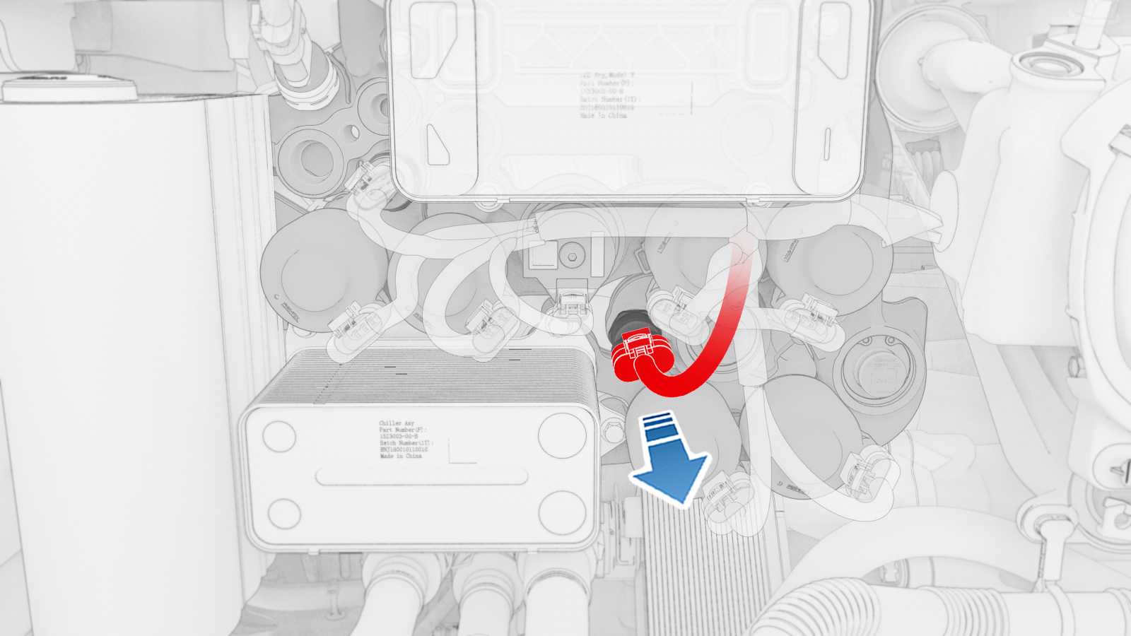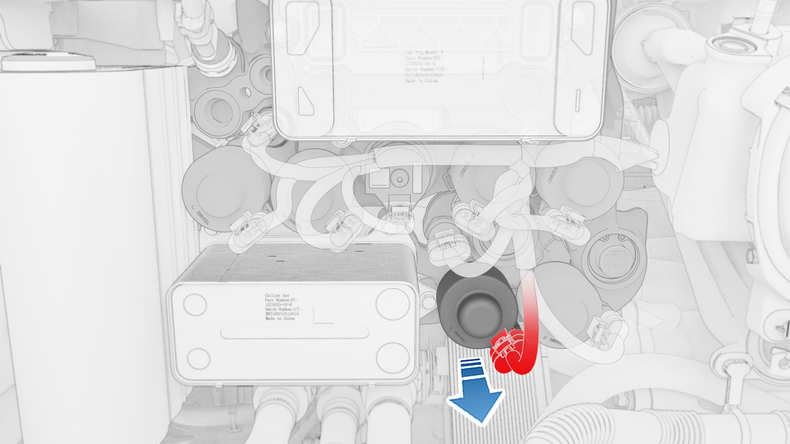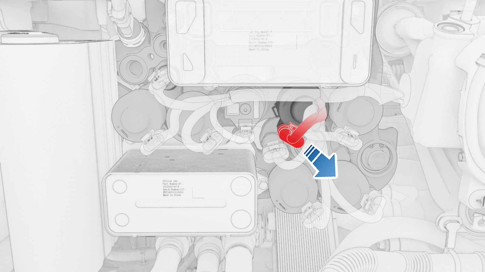 松开锁片,然后断开驾驶室左侧冷凝器膨胀阀上的电气连接器。