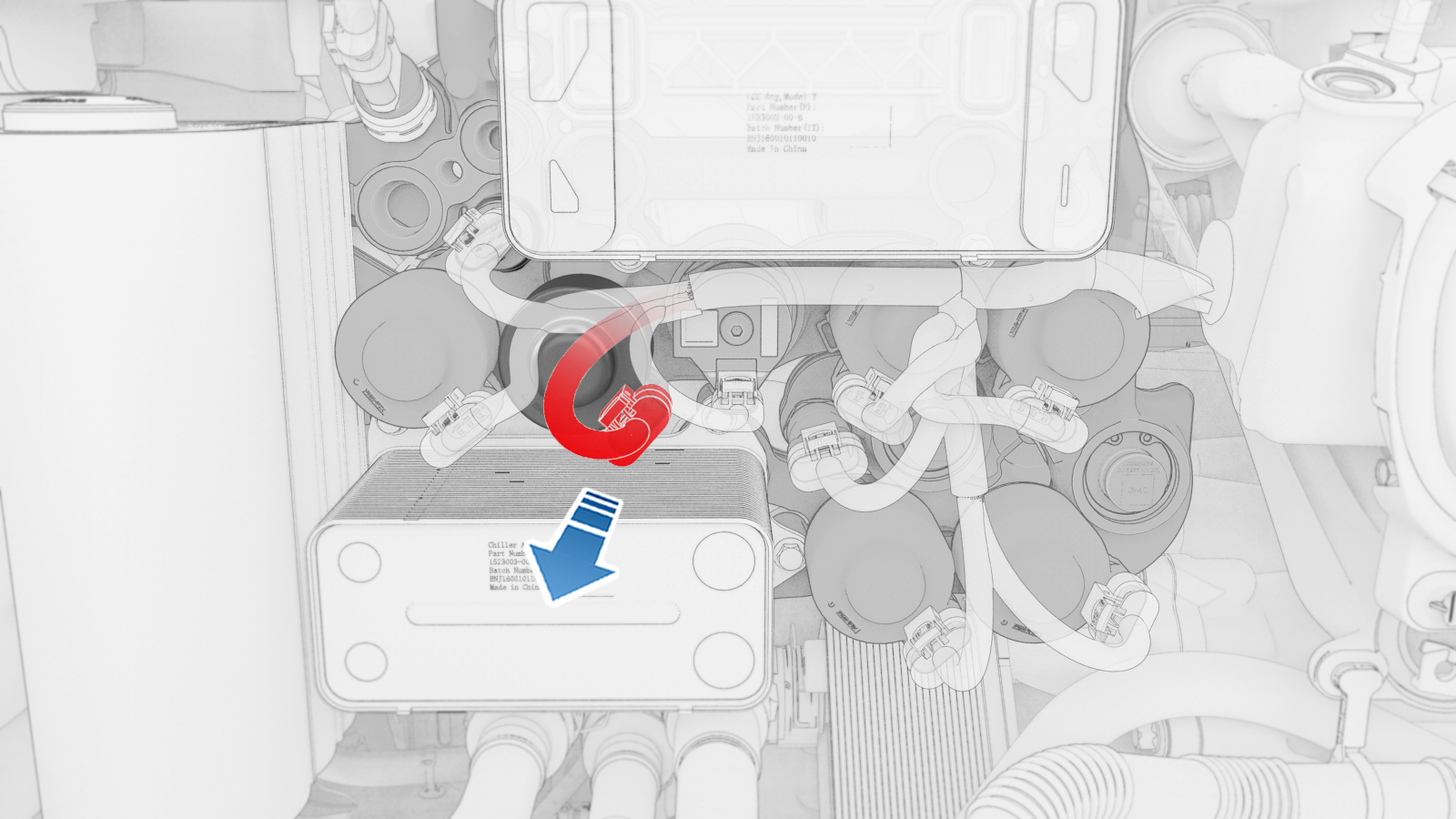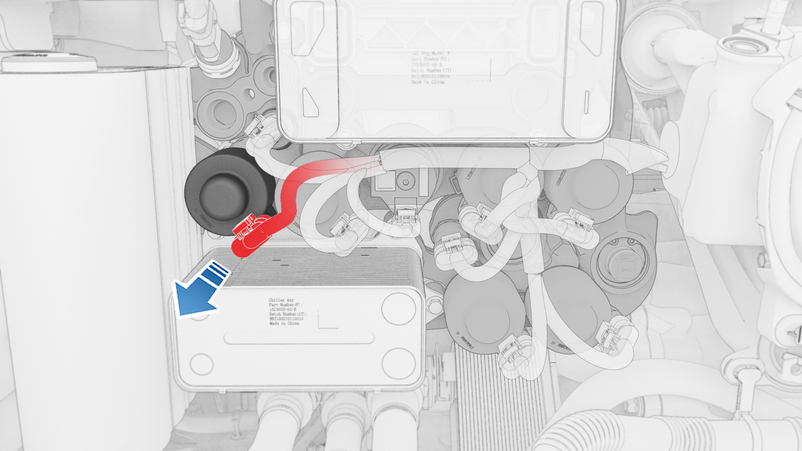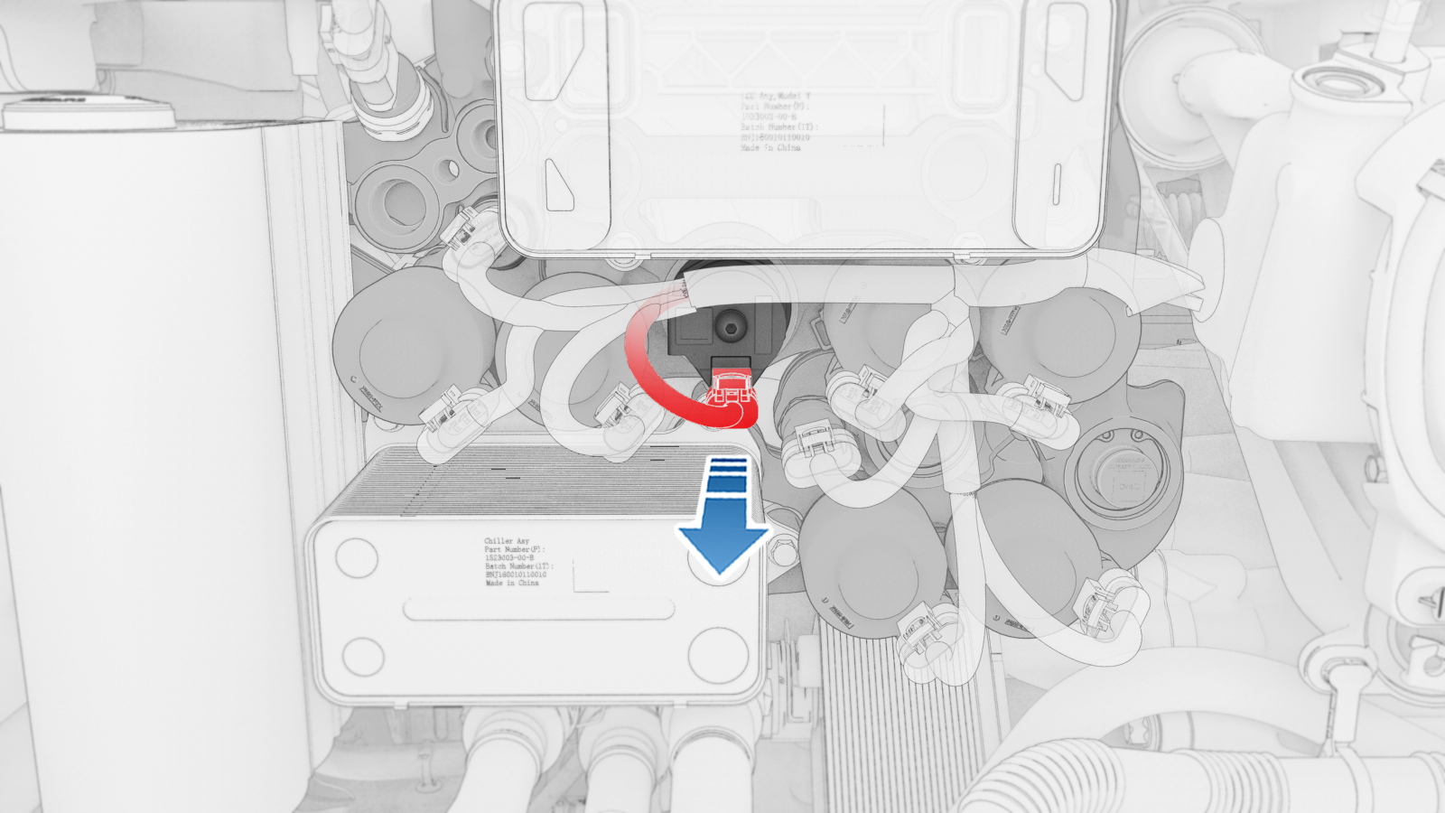 松开锁片,然后断开液冷冷凝器切断阀上的电气连接器。