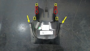 将下部间隙隔套放置到转向柱上,然后紧固将下部间隙隔套固定到转向柱的定位卡子(2 个),锁片(4 个)和定位销(4 个)。