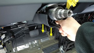 - 拆卸驾驶位脚部空间盖板。请参阅驾驶位脚部空间盖板总成 ((拆卸和更换))。