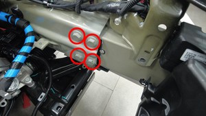 安装将左前防撞罐固定到左前内部纵梁的螺栓(4 个)。
