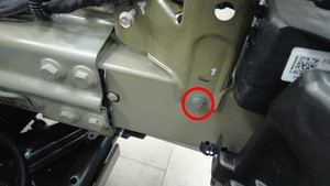 安装将左前翼子板支架固定到左前防撞罐的螺栓。