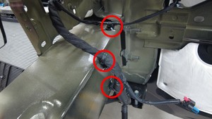 - 安装将线束固定到左前防撞罐的卡子(3 个)。