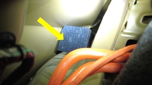 - 使用卡子撬具拆卸将后备箱侧饰板固定到车辆的左侧卡子,然后将后备箱侧饰板取下后置于一旁。