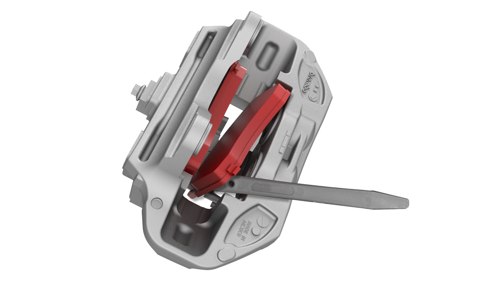 提示: 朝防震弹簧推动制动片,然后将制动片滑至固定销上。