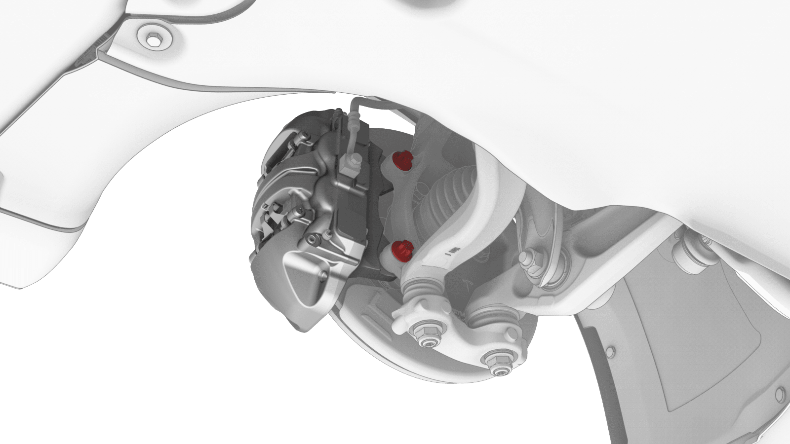 - 拆下并弃用将左前制动钳固定到左前转向节的螺栓。
