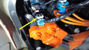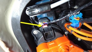 - 松开锁片,然后断开交流三相连接器与充电接口总成的连接。