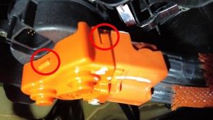 - 拆卸白色锁片,然后断开直流逻辑连接器与充电接口总成的连接。