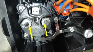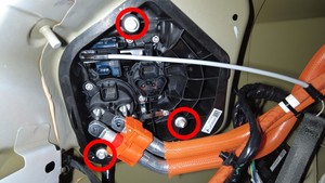 拆卸将充电接口母排引线固定到充电接口总成的螺母(2 个)。