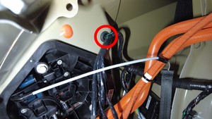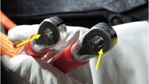 在充电接口处,使用 Hioki 电阻计测量充电接口母排引线与充电接口母排螺柱之间的电阻。另请对其他引线和螺柱执行该测试。
