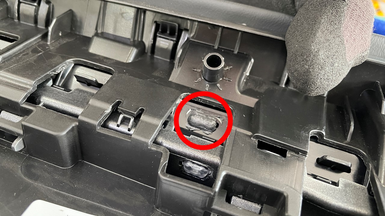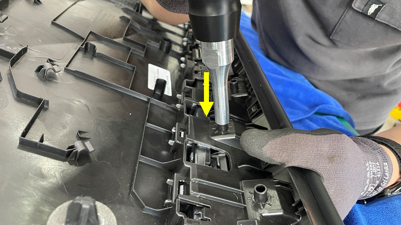 注存在两类焊接接头工具:圆形和方形。请使用正确的焊接接头工具进行焊接。注确保氛围灯和车门饰板之间无过大间隙,然后慢慢向下推动,以确保焊点齐平。