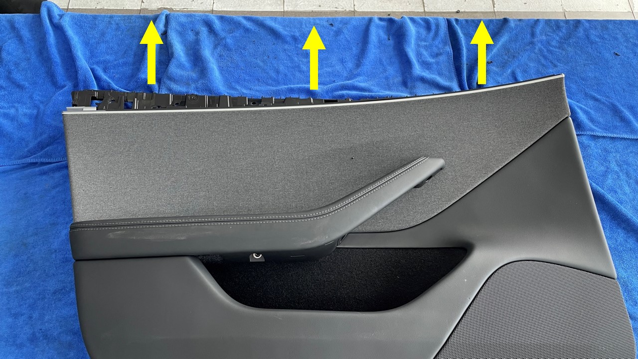 注确保上饰板和氛围灯互不妨碍,且车门饰板和氛围灯互不妨碍。必要时进行调节。