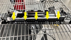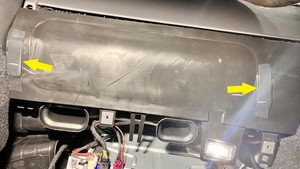 - 用 90 度长凿沿膝部气囊总成后部边缘撬动,同时弯折膝部气囊盖板周边,以松开盖板周边的各个气囊锁片。
