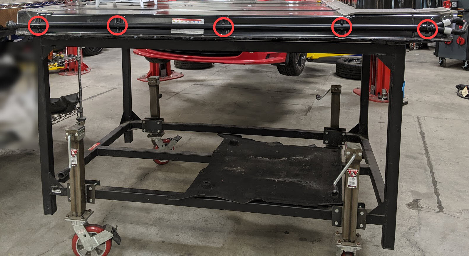 将车辆举升到适宜的作业高度,将举升机降至锁止位,然后将电池操作台从车辆下方取走。