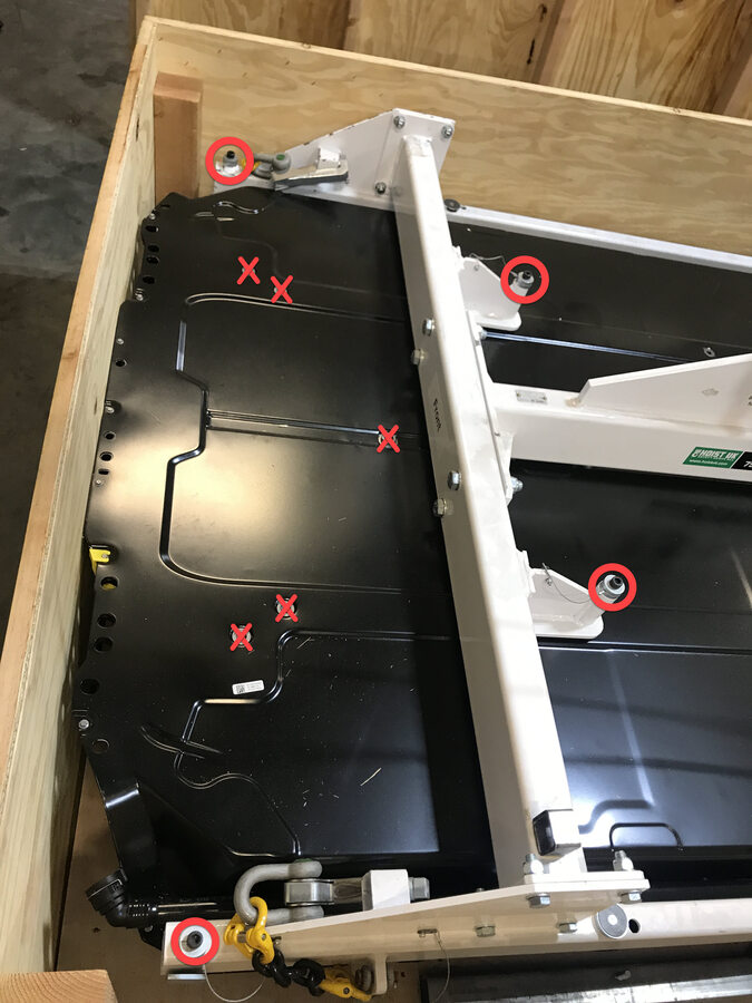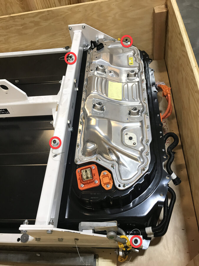 警告:切勿运输或存放已失去高压绝缘的高压电池。请先验证高压电池绝缘状况,再打包运输或进行存放。请参阅 Toolbox 文章#41977或客户文档CD-21-16-003中所述的高压电池通信工具,以确定高压电池参数是否处于运输或存放的安全限值范围内。 |