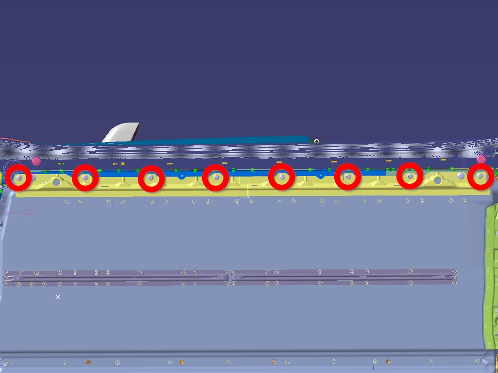 - 手动拧紧将高压电池固定到左右剪力板区域处车身的螺栓(4 个)。