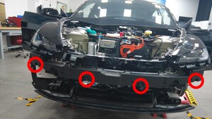 - 安装新的卡子(4 个),将前保险杠梁泡沫固定到保险杠梁。