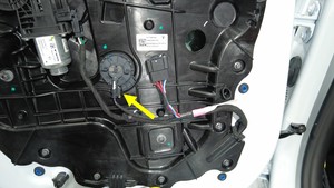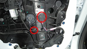 - 松开将左后车门线束固定到左后车窗电机/升降器总成的夹子(2 个)。