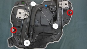 拆卸螺钉(12 个),松开将左后车窗电机/升降器总成固定到左后车门的金属卡子(2 个),然后将总成从车门上拆下。