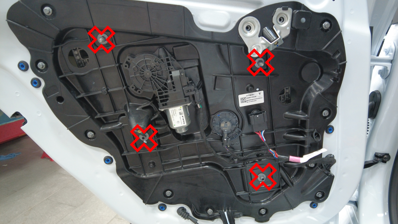 | 将左后车窗电机/升降器总成固定到左后车门的螺钉(12 个) |