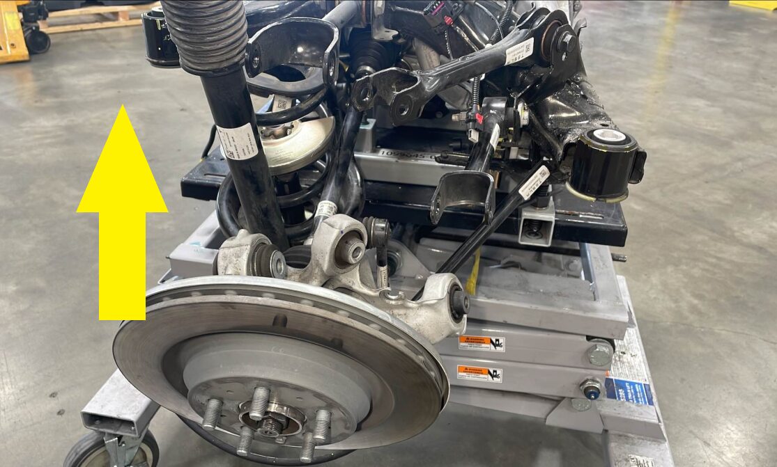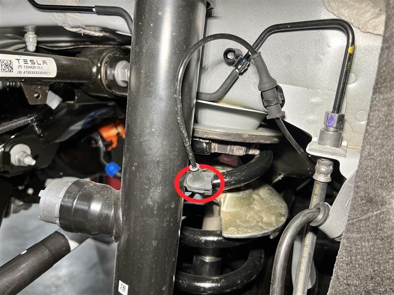 - 断开左后减震器连接器,将线束置于一旁,以便操作。