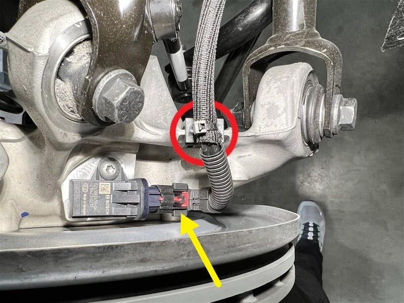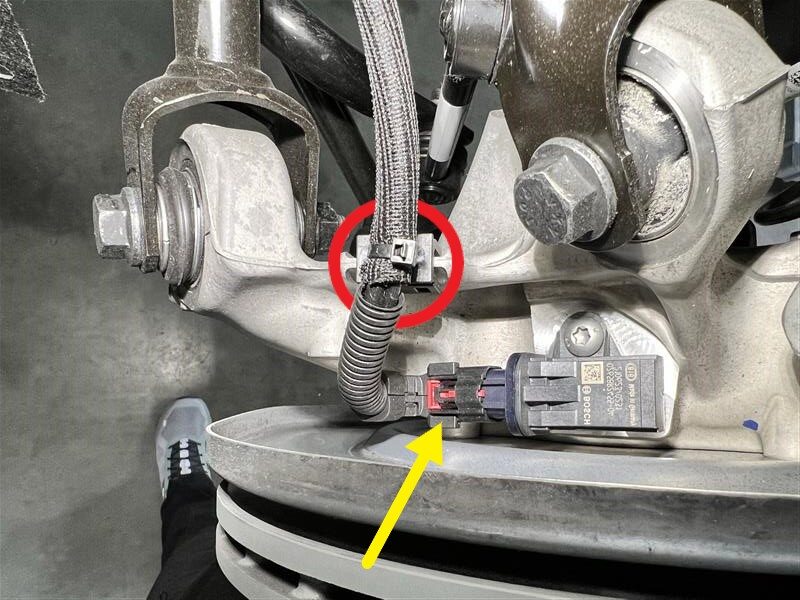 - 松开左侧轮毂转速传感器连接器。