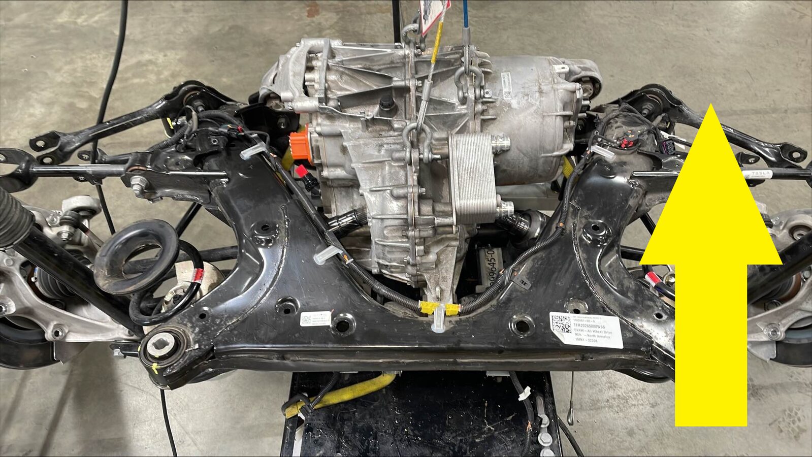 - 将副车架和后驱动单元总成放置在车辆下方。