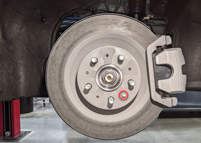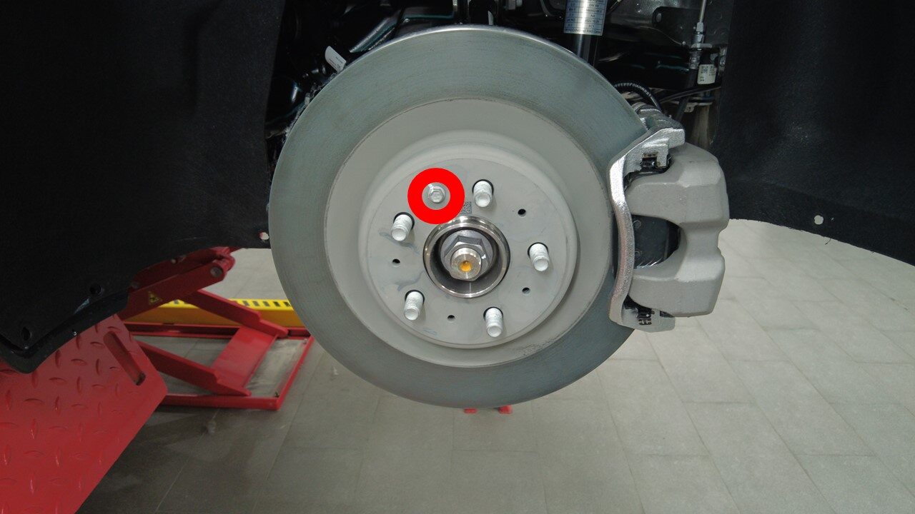 安装将左后制动盘固定到轮毂轴承的螺栓。