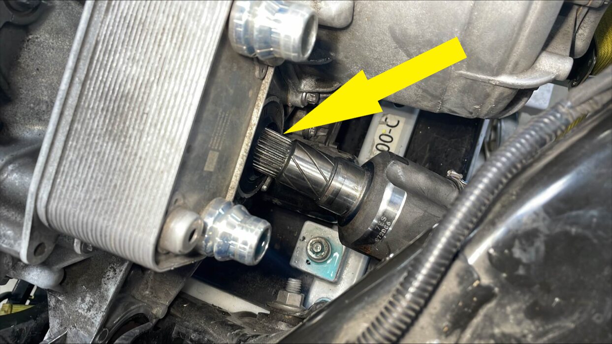 注确保半轴完全就位。请勿用力过猛。如果半轴无法就位,检查花键是否已准确对齐,且总成是否已经摆正。