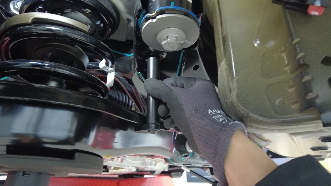 - 安装左后减震器连接器。