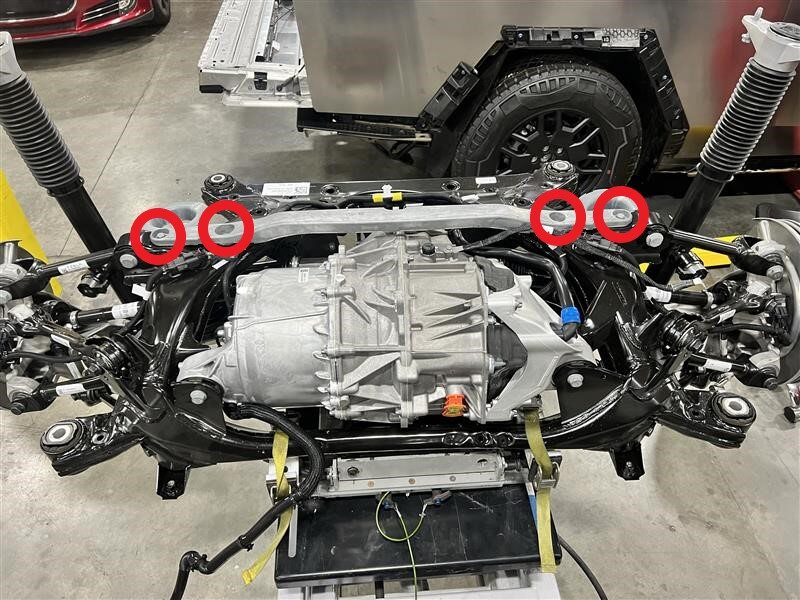 | 将驱动单元固定到副车架的左侧、右侧和后部螺栓 |