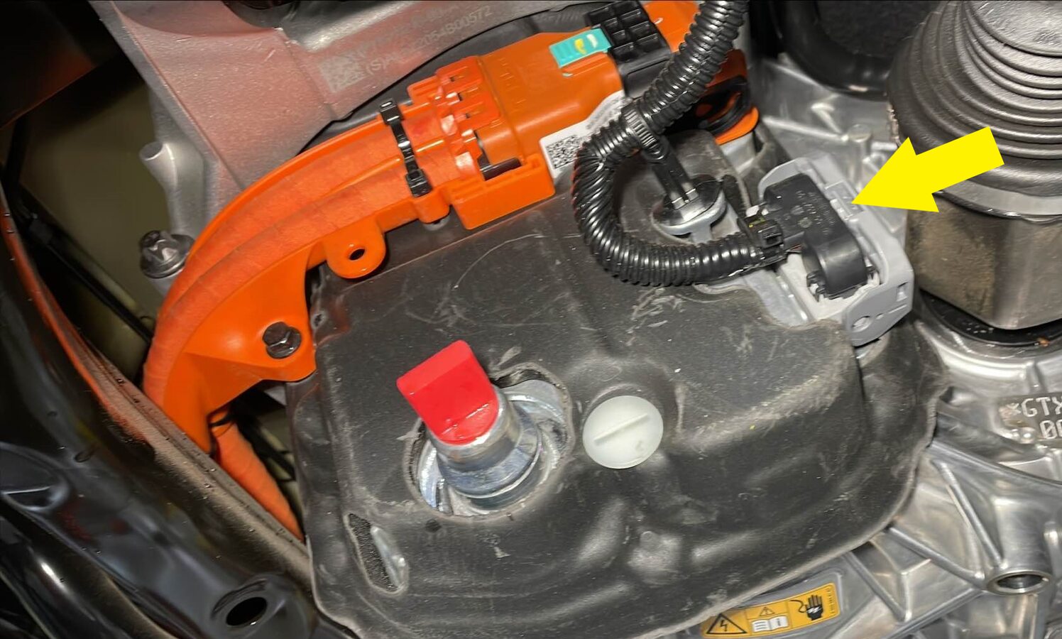 - 拉动红色锁片进行解锁,然后再次拉动以松开机油泵连接器。