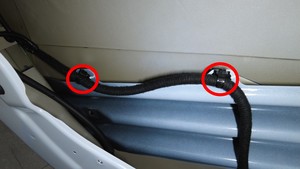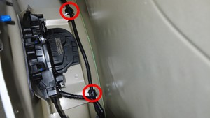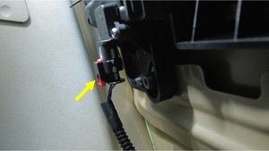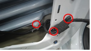- 松开将左后车门线束固定到左后车门的卡子(7 个)。
