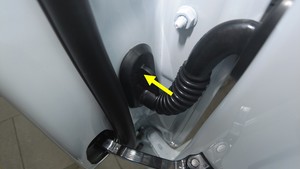 - 松开将左后车门线束密封件固定到 B 柱的锁片(4 个)。