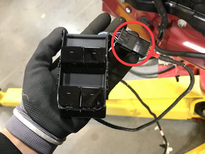 - 完全降下左前车窗,将车窗开关工具从左前车门线束上断开。