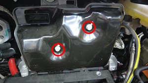 拆下将前车身控制器护板固定到前车身控制器的螺栓(2 个),然后拆下前车身控制器护板。