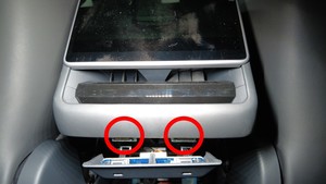 松开将 USB 边框总成固定到中控台的卡子和锁片。