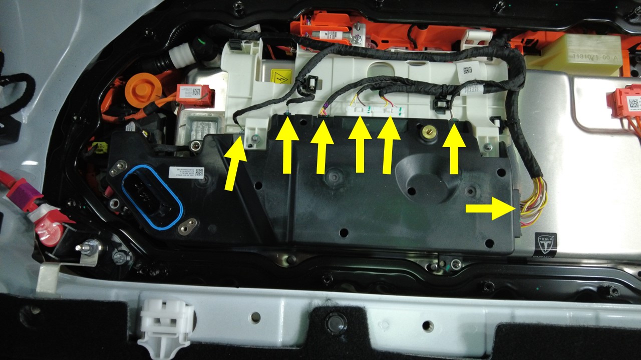 拆卸将高压控制器固定到铰链托盘的螺栓,然后从车上拆下控制器。