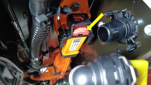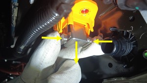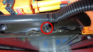 - 松开将高压电池右侧内部回流软管固定到高压电池的卡子。