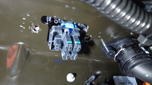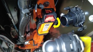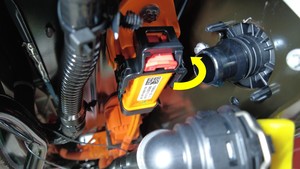 - 拆卸内外螺纹接头上的堵头,将高压电池内部右侧回流软管快速连接到高压电池磁盘外壳,然后紧固卡子。