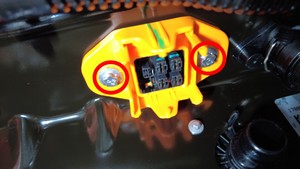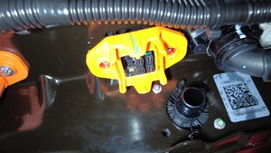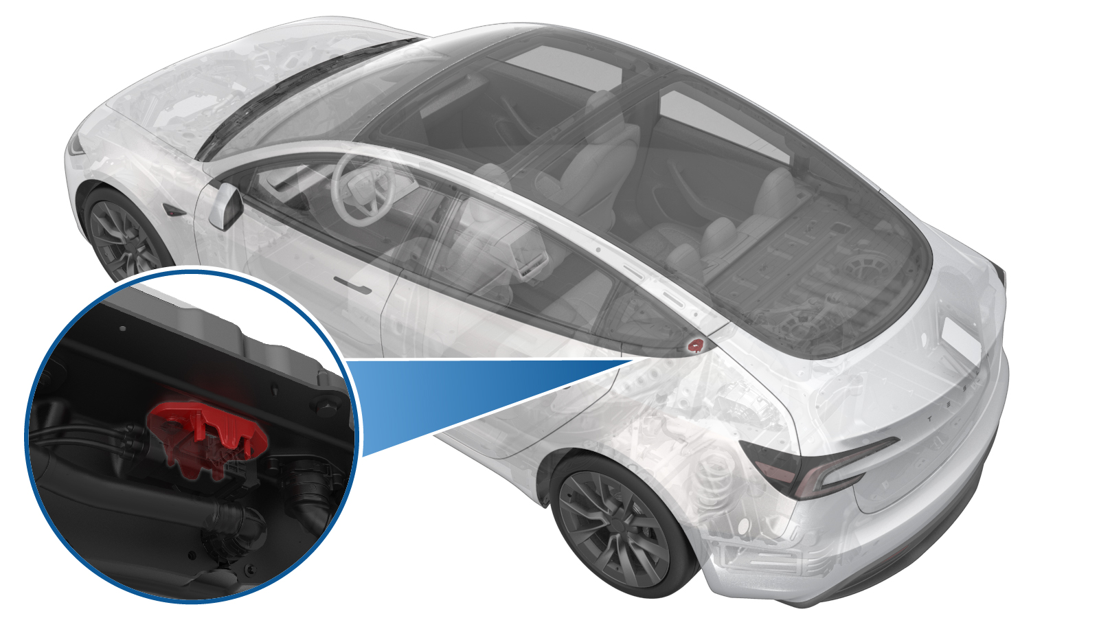 - 滑动释放装置,将高压电池正温度系数加热器和空调压缩机连接器把手锁定在固定位置。