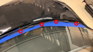 - 在清洗器叶片正上方的挡风玻璃上粘贴胶带,以帮助定位清洗器喷嘴目标点。