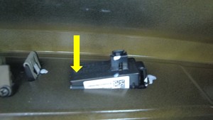 - 将车牌灯向车辆右侧推动以下压卡子,然后下压车牌灯另一侧的卡子以将车牌灯拆下。