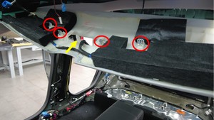 - 紧固将挡风玻璃线束固定到右侧 A 柱的卡子(6 个).