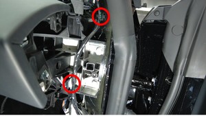 - 断开 A 柱下部的挡风玻璃线束电气连接器(3 个)。