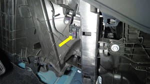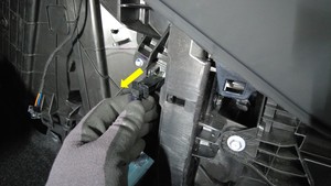 - 使用小号一字螺丝刀松开将左下风管热敏电阻固定到 HVAC 总成的锁片(2 个),然后将热敏电阻从车上拆下。