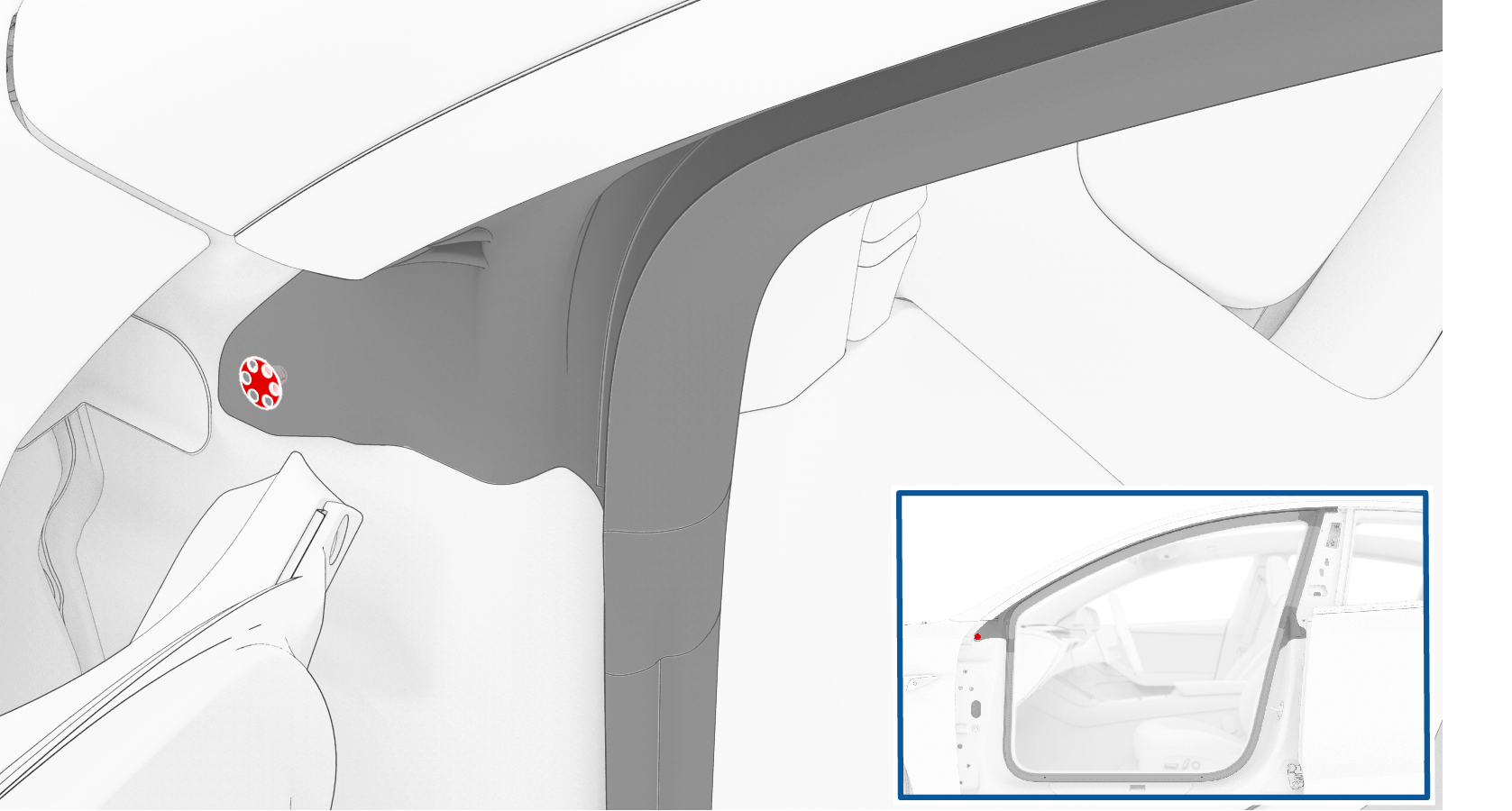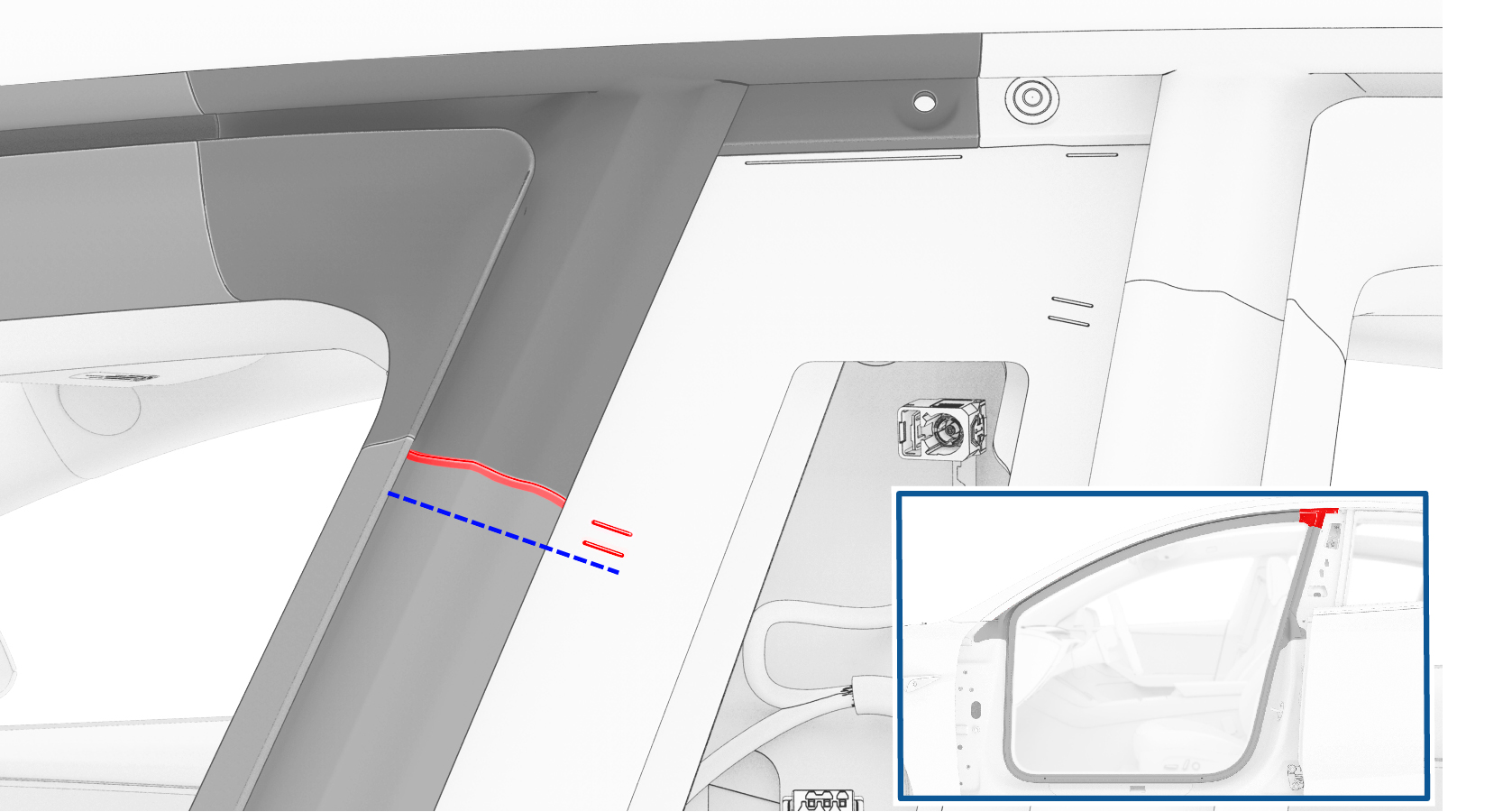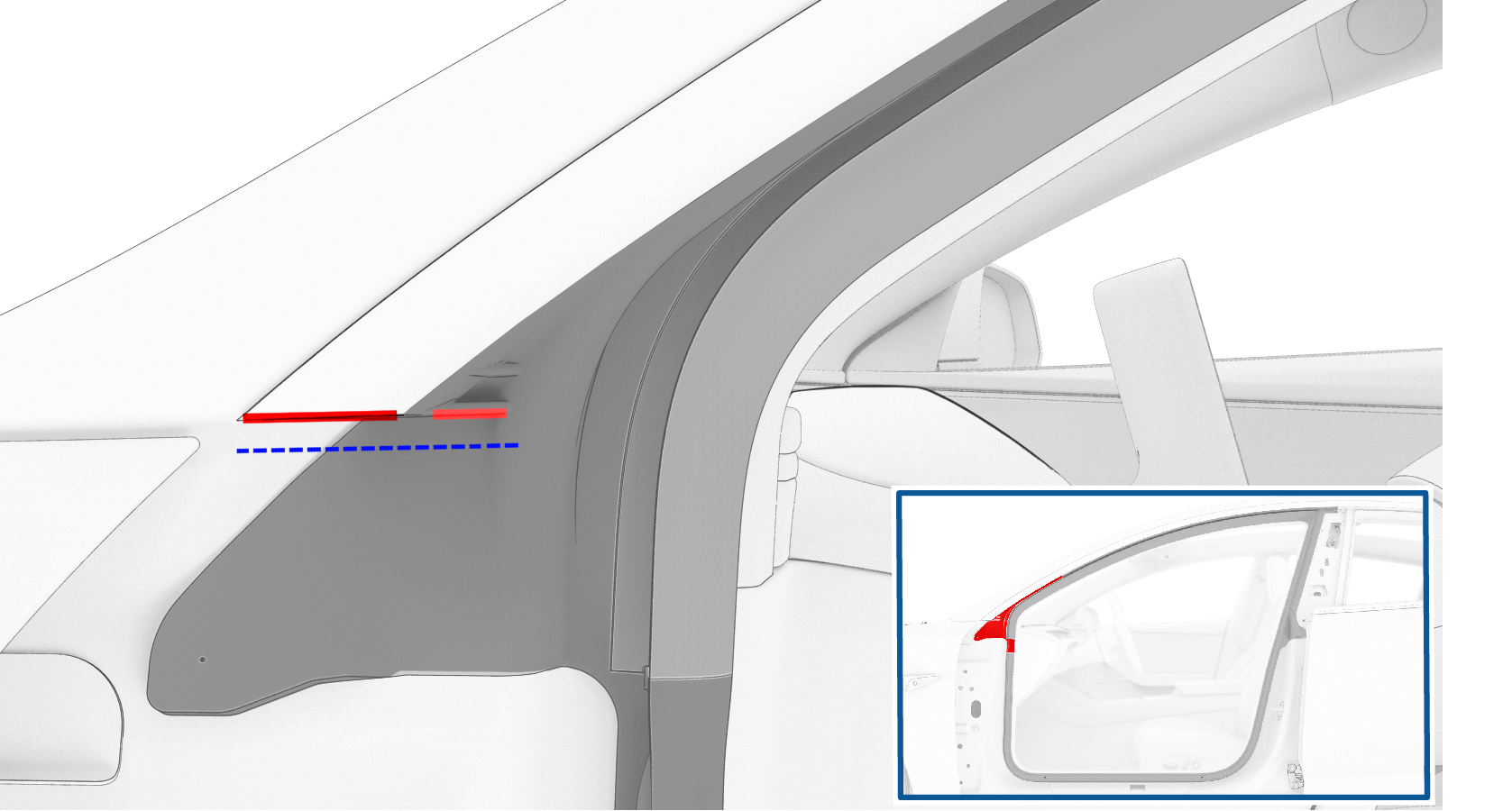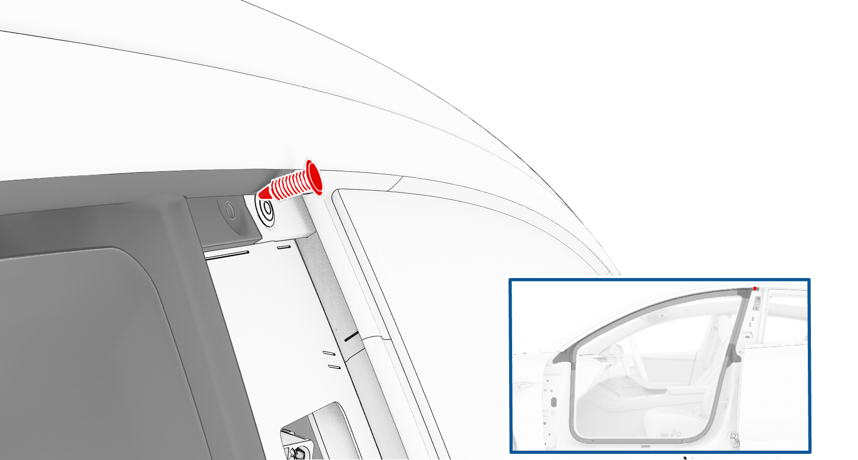 - 将密封条塞入亮条中,确保其紧固固定在饰板和顶篷上。