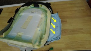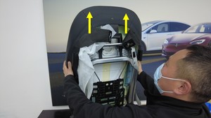 将气囊滑槽连同其内部气囊一起滑过座椅靠背泡沫,然后将气囊从气囊滑槽上小心拆下。